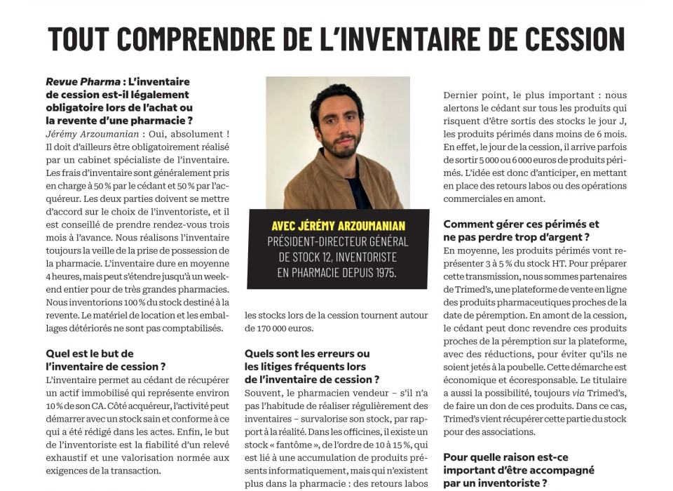 Publication d'un article au sujet de l'inventaire de cession dans le numéro d'octobre 2023 de La Revue Pharma . Article disponible sur : https://www.revuepharma.fr/2023/10/tout-comprendre-de-linventaire-de-cession/